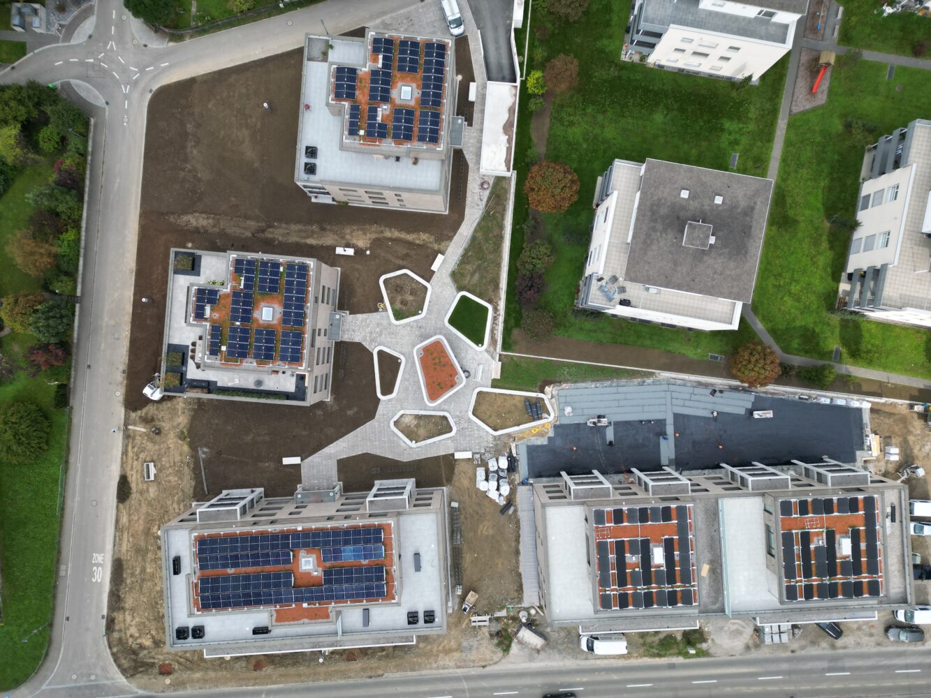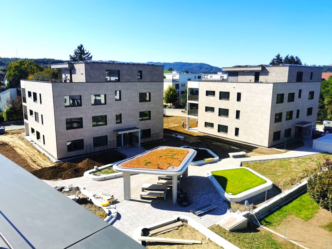 Hochwertige Materialien, ein moderner Ausbaustandard und nachhaltige Haustechnik wie Erdsonden-Wärmepumpe, Photovoltaikanlage und Lüftung sorgen für hohen Wohnkomfort. Die Tiefgarage ist für E-Mobility-Ladestationen vorbereitet.